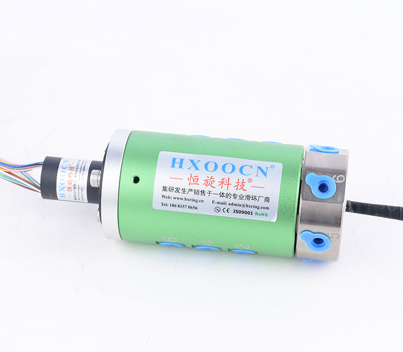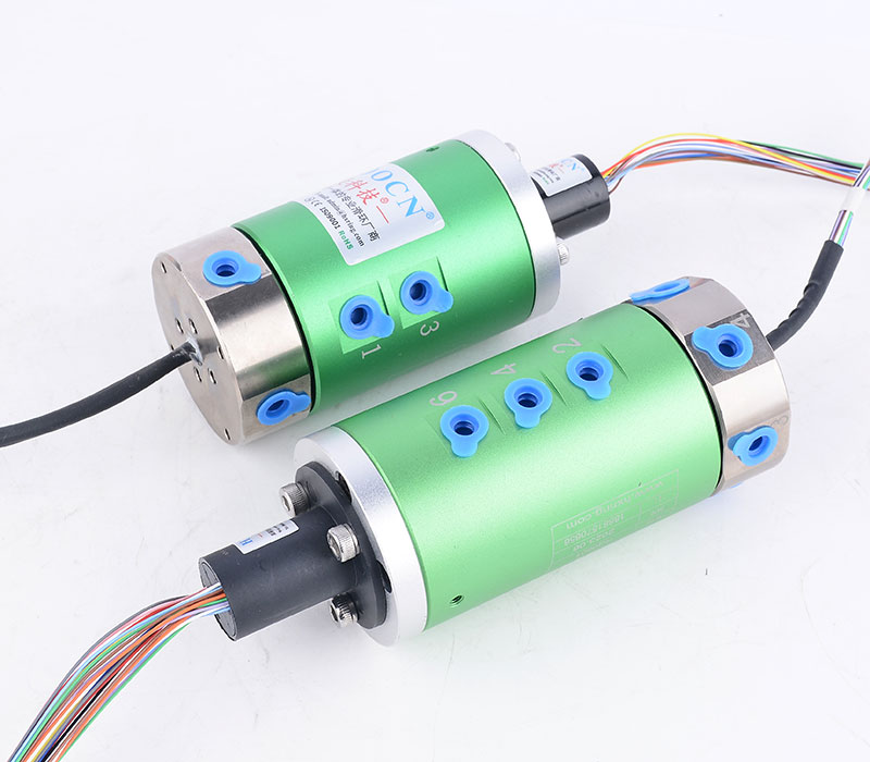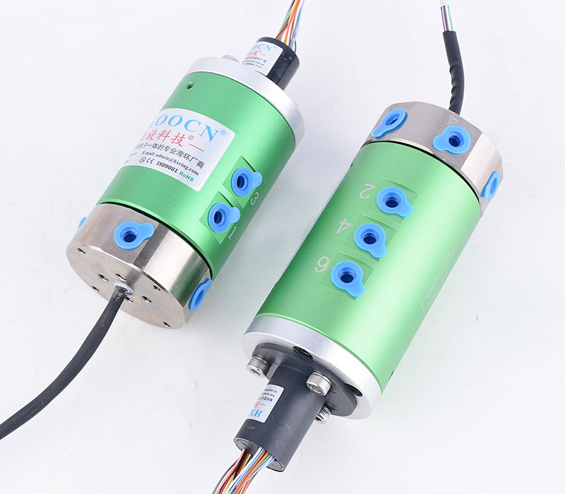 氣滑環(huán)組合帽式滑環(huán)是一種集成了氣動(dòng)傳輸和電氣傳輸功能的多功能旋轉(zhuǎn)連接裝置。它將氣滑環(huán)(用于傳輸氣體介質(zhì))與帽式滑環(huán)(用于傳輸電信號(hào)和電力)結(jié)合在一起,能夠在設(shè)備旋轉(zhuǎn)的同時(shí),實(shí)現(xiàn)氣體和電力的同步傳輸。這種設(shè)計(jì)簡化了設(shè)備結(jié)構(gòu),減少了安裝空間,并提高了系統(tǒng)的可靠性。